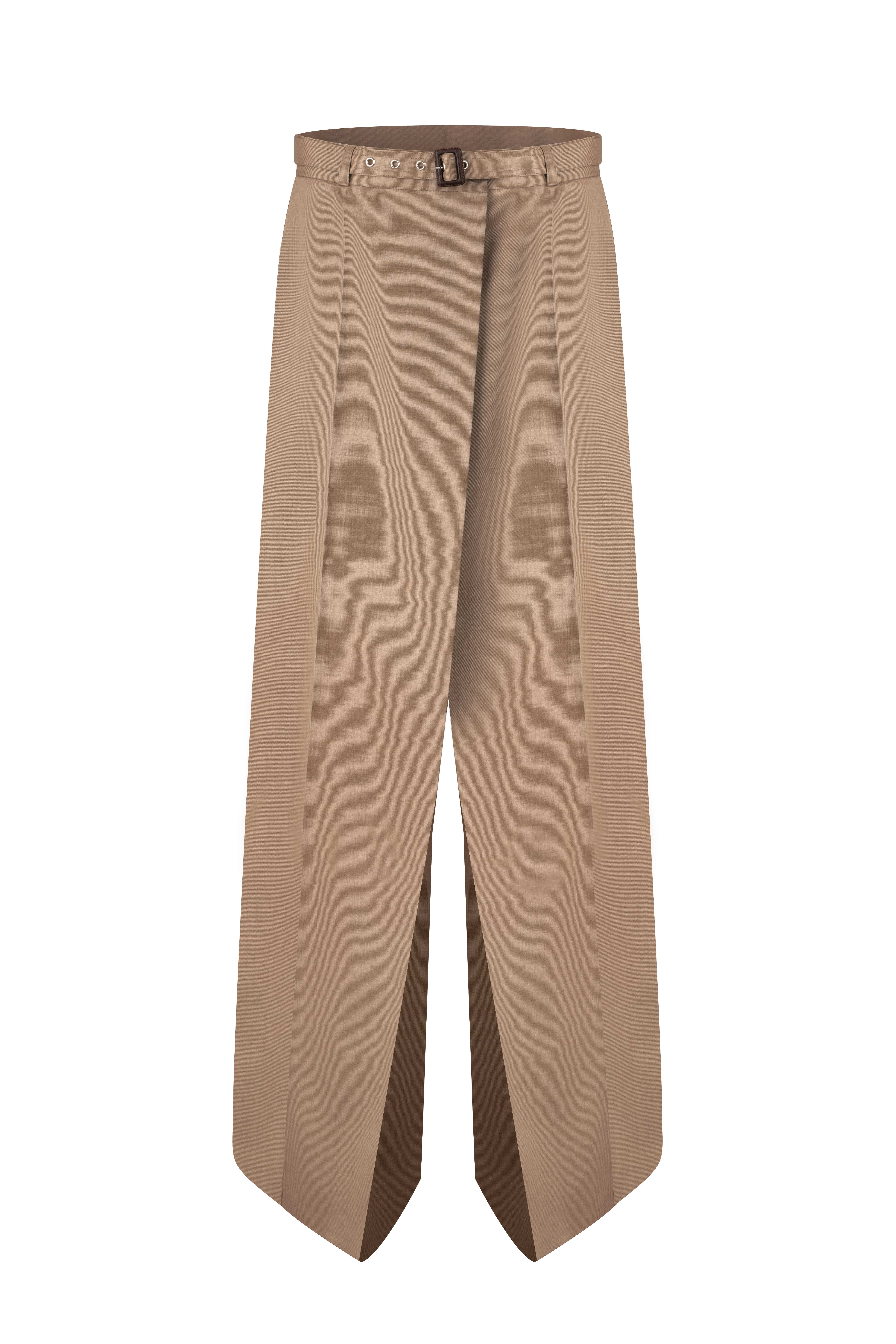 DETAILS: High-waisted trousers with a sculptural front pleat that creates an elegant movement while walking. The wide silhouette visually slims the hips and elongates the legs. A timeless piece combining relaxed comfort with refined feminine elegance. Finished with decorative welt pockets with flaps at the back.