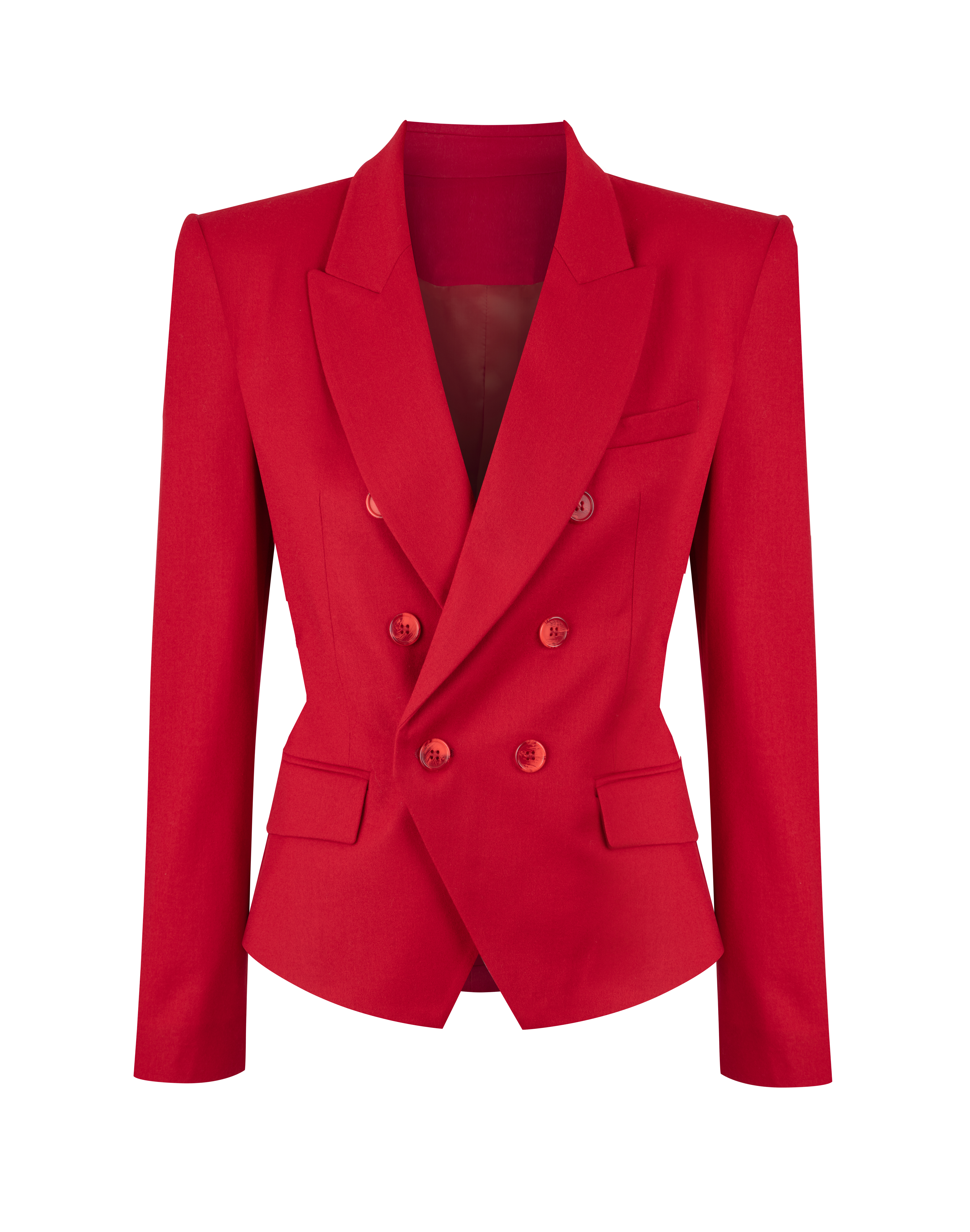 DETAILS: Elegant double-breasted blazer in a deep navy shade. The precisely tailored cut enhances the silhouette and creates a sophisticated, feminine look. Classic lapels and clean lines reference timeless tailoring inspired by menswear. Perfect worn on its own or styled with the matching trousers from the collection. Fully lined